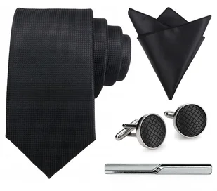 Zestaw męski w pudełku - krawat + poszetka + spinki do mankietów + spinka do krawata CZARNY