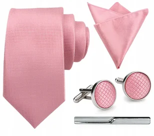 Zestaw męski w pudełku - krawat + poszetka + spinki do mankietów + spinka do krawata JASNY RÓŻOWY