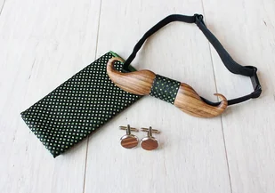 Przedstawiamy Państwu nietypowy i ciekawy zestaw. W skład zestawu wchodzą: 1) Drewniana muszka 3D wykonana z drewna jesionu, frezowana. Tkanina w obszyciu w ciekawym, starannie wykonanym wzorze. Wy ...
