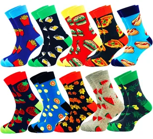 Skarpety te doskonale nadają się na prezent dla siebie lub bliskiej osoby, dodając odrobinę radości do codziennego ubioru. Idealnie pasują zarówno do sportowych butów, jak i eleganckich butów casualowych. Ten zestaw zawiera 10 par skarpet, co daje Ci mnóstwo możliwości tworzenia różnorodnych stylizacji i podkreślenia swojego indywidualnego smaku. Ciesz się wygodą, stylem i uśmiechem z naszymi kolorowymi i śmiesznymi skarpetami męskimi! Zamów teraz ten zestaw skarpet i zaskocz swoje stopy oraz swoje otoczenie niepowtarzalnym stylem i humorem. Świetna jakość i zabawne wzory sprawią, że już nie będziesz mógł się doczekać ich noszenia!