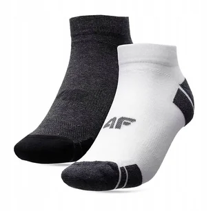 Męskie bawełniane skarpetki 2-PAK firmy 4F Marka/model: 4F S23-SOCM153 Kolor: Ciemny szary + Biały Materiał: 68% poliester, 27% akryl, 3% poliamid, 2% el...