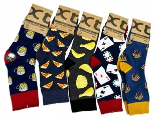 Oto zestaw 5 par niezwykle wyjątkowych i kolorowych skarpet męskich, które dodadzą radości każdej garderobie! Nasze skarpety są długie, wykonane z wysokiej jakości bawełny, a ich śmieszne wzory sprawią, że Twój każdy krok będzie pełen uśmiechu.