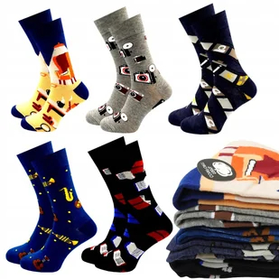 5x Skarpety Męskie Długie Bawełniane Skarpetki Wysokie Kolorowe 39-42 CECHY PRODUKTU ✅ROZMIAR: 39-42 ✅BAWEŁNA 85% ✅12% POLAMID✅3%ELASTAN ✅ZESTAW 5 PAR ✅Kolorowy Motyw : Te skarpety wyróżniają się oryginalnym motywem. ✅Komfort Bawełny: Zawartość bawełny na poziomie 85% gwarantuje oddychający materiał, który utrzymuje Twoje stopy w dobrej kondycji.