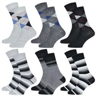 6 par Skarpety męskie bawełniane w romby i paski zestaw rozmiar 43/46