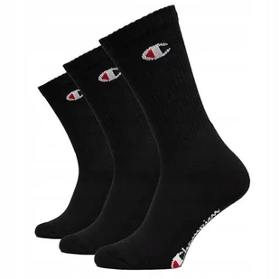 CHAMPION SKARPETY MĘSKIE DŁUGIE 3-PAK CZARNE ORYGINALNE ROZMIAR 43-46 Skarpety Champion czarne 3-pack to skarpety na trening i na co dzień. Długość do łydki. Prążkowany ściągacz zapobiega zsuwaniu. Wzmocnione na palcach i na pięcie. Logo na ściągaczu i na podeszwie.