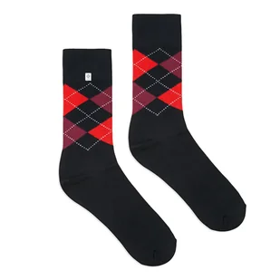 Kolorowe skarpetki w czerwone romby. Modne kolory i wzory sprawiają, że skarpety pasują do każdego stroju. Doskonały gwiazdkowy prezent dla mężczyzny :) Sock...