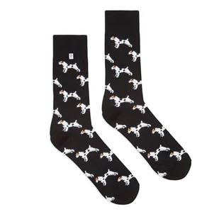 Skarpetki w pieski rasy Jack Russell. Lubisz psy? Te skarpetki są dla Ciebie! Modne skarpetki, czarne w pieski Jack Russell Terrier. Pasują zarówno do garnit...