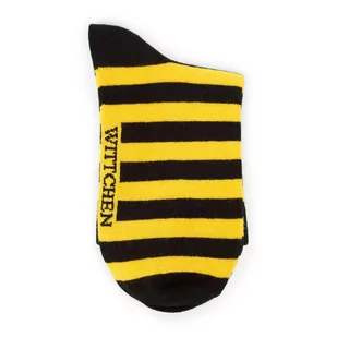 Kolorowe skarpety damskie z bawełną. Chcesz wprowadzić odrobinę koloru do swojej szafy? Wybierz damskie skarpetki w żółto-czarne paski! Inspirowane ubarwieniem pszczół, wprowadzą wiele słodyczy do codziennych outfitów. Możesz nosić je do wszystkiego, lecz najpiękniej wyglądają w połączeniu z prostymi zestawami, składającymi się np. z czarnych mokasynów, ciemnych chinosów i marynarki oversize. Wysokiej jakości materiał, łączący bawełnę z włóknami poprawiającymi elastyczność, jest miękki, wygodny i przyjazny dla skóry.