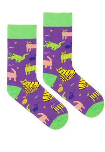 Fioletowe koty kolorowe skarpetki we wzory Kabak