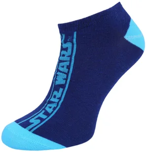 Jedna para skarpetek męskich, krótkich, typu stopki. Skarpetki w kolorze granatowym, z niebieskimi dodatkami i napisem "STAR WARS". Wykonane z miękkiego, ela...