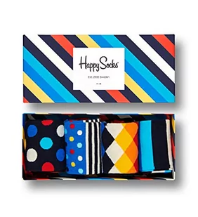 Happy Socks Stripe Gift Box, kolorowe i zabawne, Skarpety dla kobiet i mężczyzn, Niebieski-Czerwony-Turkus-Biały-Żółty 4 pary (41-46)