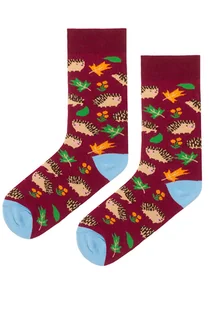 Jeże bordo kolorowe skarpetki bawełna organiczna Kabak
