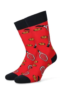 Sport to zdrowie! Daj temu wyraz poprzez skarpety z Twoją ulubioną dyscypliną sportową. Czerwone skarpetki w rakiety i piłki tenisowe wykonaliśmy z wytrzymał...