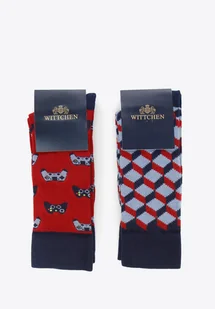 Męskie skarpetki w nowoczesny wzór – zestaw 2 par czerwono-granatowe 43 / 45