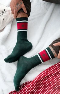 Skarpetki Męskie Świąteczne Prążek z choinką 1290. 040 to idealny model dla miłośników wygody i świątecznego klimatu. Połączenie głębokiej zieleni z czerwonym panelem oraz minimalistyczną choinką tworzy efektowny, sezonowy akcent, który świetnie sprawdzi się zarówno w codziennych stylizacjach, jak i jako drobny prezent. Cechy produktu: Bawełniane i komfortowe,