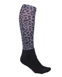 Skarpetki z wyrazistym wzorem na nodze. Materiał wokół łydki jest dodatkowo cienki, aby łatwo mieścił się w butach jeździeckich. Część stopy jest miękka i gr...
