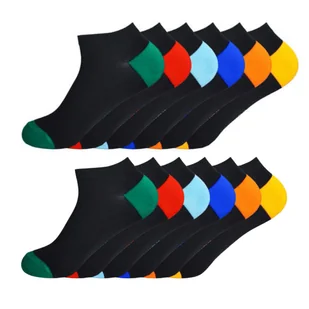 Stopki męskie bawełniane 6 par czarne skarpetki z kolorowym akcentem 41/46 Czarne stopki męskie do kostki z kolorowymi akcentami na palcach i piętach
