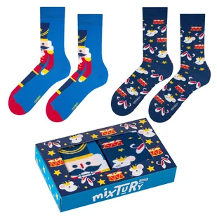 Szczegóły produktu ➡️ Kupujesz - 2 pary skarpetek świątecznych mixTURY Bajkowe ➡️ Rozmiar - EU 36-40 ➡️ Odpowiednie na stopy o rozmiarze: 36, 37, 38, 39, 40 ➡️ Skład - 80% bawełna, 18% poliamid, 2% elastan ➡️ Produkt Polski - Zooksy są projektowane i tworzone w Łowiczu : ) ➡️ Jakość - używamy tylko certyfikowanych przędz OEKO-TEX STANDARD 100 ZOOKSY to coś więcej niż zwykłe skarpetki ➡️ Świąteczne skarpetki z motywem dziadka do orzechów, uroczych myszek i bębenka to doskonały dodatek dla każdego, kto lubi nietuzinkowe akcenty w zimowej garderobie. Skarpety te zachwycają oryginalnym wzorem i wyjątkową jakością wykonania, oferując jednocześnie wygodę i przyjemność noszenia. Wykonane z miękkiej, przewiewnej bawełny, zapewniają ciepło oraz komfort, idealnie sprawdzając się w chłodne dni i nadając stylowy akcent każdej zimowej stylizacji.