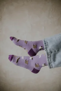 Psia paczka w pastelowym wydaniu Skarpetki z motywem szczeniaków to propozycja pełna uroku i pozytywnej energii. Na tle w kolorze lawendy spotkasz ulubione rasy: yorka, westie, buldoga, owczarka, bordera i labradora – każdy z nich gotowy, by poprawić Ci humor każdego dnia. Delikatne, pastelowe barwy w połączeniu z kontrastującymi palcami i piętami tworzą stylowy, a jednocześnie zabawny wzór, który pasuje do codziennych stylizacji. To doskonały wybór dla wszystkich, którzy kochają psy i kolorowe dodatki.