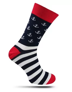 Skarpetki w Kotwice, Granatowo-Biało-Czerwone, Marinistyczne, Casualowe, Męskie -HIS STORY