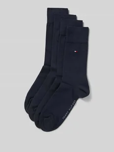 Skarpety długie męskie Tommy Hilfiger;Efekt: jednolity kolor;Aplikacja: Wyhaftowane logo;Detale: wzmocniona pięta;Pas: elastyczny;Wielopak: Zestaw 4 szt.;Wykończenie materiału: drobny ścieg;Materiał: Mieszanka bawełny