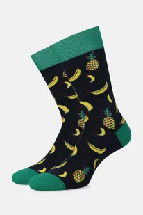 Skarpety o owocowym wzorze, który przyciąga uwagę. Kolorystyka granatowo-zielona i motywy bananów oraz ananasów nadają im świeżości i oryginalności. Cechy ch...