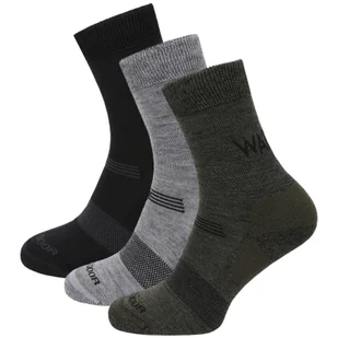 opakowanie 3 par dzianina odpowiednia do wielodniowych wędrówek technologia dzianych wzorów z tworzyw sztucznych wzmocniona pięta i palce - większa trwałość, wytrzymałość i wygoda nadaje się również do bardziej wymagających ruchów funkcjonalny materiał o doskonałej oddychalności i odprowadzaniu wilgoci przędza z naturalnej wełny °G0 doskonałe właściwości izolacyjne bardzo przyjemny w dotyku luźniejszy dół waga 50 g Skład materiału: 52% wełny merynosów 44% poliamid 2% elastanu 2% poliuretanu