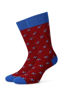 Skarpety męskie, czerwone w pinezki. Wykonane zostały z wytrzymałej dzianiny z przewagą bawełny i nieznaczną domieszką poliamidu, polipropylenu, elastodienu i elastanu, dzięki czemu skarpety są wytrzymałe i zachowują pożądany kształt po długim użytkowaniu i wielokrotnym praniu. Wygodny ściągacz i płaski szew dają doskonały komfort użytkowania. Trwały kolor, gładka i przyjemna w dotyku dzianina oraz znakomita wytrzymałość, oto cechy wyróżniające skarpety LANCERTO. Skarpety ze wzorem w pinezki będą świetnym dodatkiem do bawełnianych chinosów lub jeansów LANCERTO.