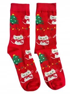 Skarpety świąteczne męskie w koty 43-46 skarpety świąteczne w koty czerwień