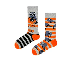 Kolorowe skarpetki nie do pary Szop Pedro to doskonały wybór dla tych, którzy lubią się wyróżniać. Pierwsza skarpetka, w odcieniach szarości, przedstawia szopa bawiącego się na gramofonie, odtwarzają ...