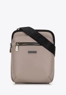 Męska listonoszka z ekoskóry z kieszeniami szarobeżowa