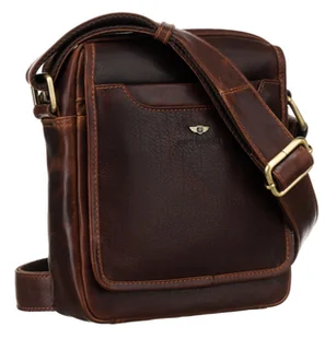 PETERSON Brązowa męska torba na ramię skóra naturalna klasyczna listonoszka miejska kieszonki szeroki regulowany pasek
