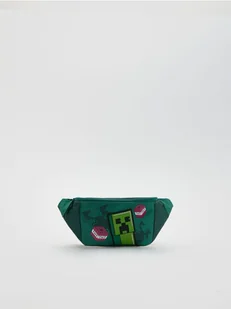 Saszetka o prostym fasonie, wykonana z gładkiego materiału z nadrukiem.