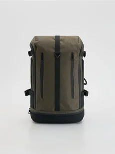 Plecak o prostym kroju, wykonany z materiału o podstawowej wodoodporności.