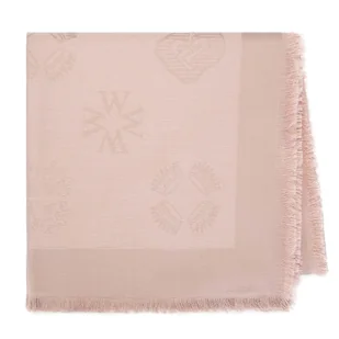 Miękka damska chusta z jedwabiem tkana w monogram. Ta szykowna damska chusta będzie wyjątkowym dodatkiem do każdej stylizacji. Jest miękka w dotyku, co pozwoli na swobodne jej układanie, zarówno dookoła szyi, jak i na ramionach. Uwagę zwraca zdobiący całą powierzchnię chusty żakardowy wzór z herbów, lwów, koron i liter „W”, znany z linii torebek Signature. Jego delikatny połysk sprawia, że kolory chusty wyglądają inaczej w zależności od oświetlenia.