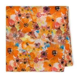 Damski szal z kwiatowym motywem brązowo - pomarańczowy