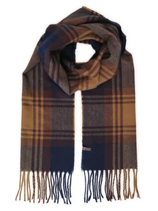 Granatowy szalik męski w kratę - camel R50 Granatowy szalik męski w kratę - camel. Szal bardzo miły w dotyku. Szerokość: 35cm; Długość: 184cm. Skład: 100% po...