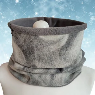 Bardzo starannie wykonany komin wykonany z 2 warstw materiału. Wierzchnia - super jakości tkanina wełniana w kolorze szarym, na niej nafilcowane smugi w kolorze ecru, spód ciepły polar w kolorze szar ...