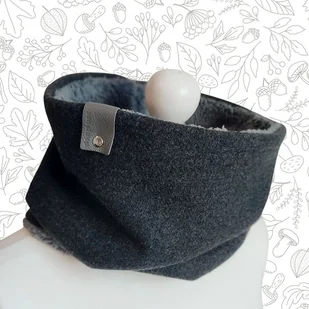 Bardzo starannie wykonany komin wykonany z 2 warstw materiału. Wierzchnia - tkanina wełniana (włoska, super jakości) w kolorze grafitowym; spód z bardzo miękkiego, bardzo miłego w dotyku i ciepłego polaru ...