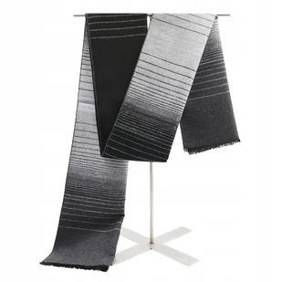 szaro - grafitowo - czarny wzór: pasy materiał: miła w dotyku akrylowa włóczka w przeciwieństwie do wielu włókien, akryl nie uczula, materiał jest przyjemny dla ciała, ładnie się układa właściwości termoizolacyjne zapewniające ciepło miękki jak kaszmir duży wymiar: szer. 30 cm x dł. 180 cm wykończony frędzlami producent: