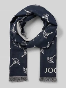 Szal męski JOOP! Kolekcja;Mieszanka wełny i modalu z dodatkiem bawełny;Prostokątny fason;Model ‘Feris’;Wystrzępienia;Nadruk z logo;Szerokość w rozmiarze 1: 40 cm;Długość w rozmiarze 1: 30 cm