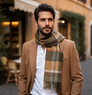 Szalik Męski Brązowy Karmelowy Kratka Wełna