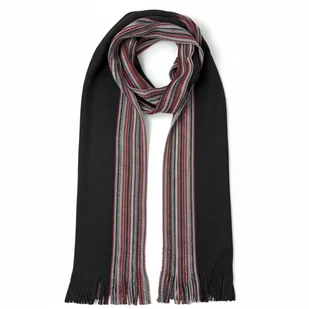 Szalik Męski szal 100% Wełniany czarny czerwony w paski