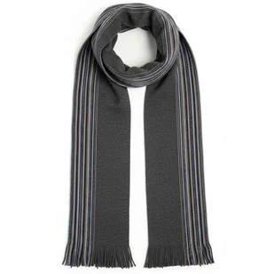 Szalik Męski szal 100% Wełniany szary niebieski w paski