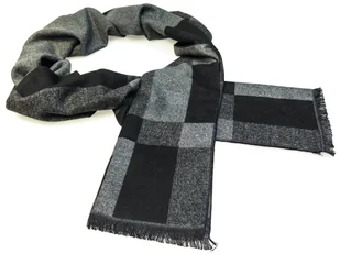 Szaro-czarny szalik męski R25 Szaro-czarny szalik męski R25. Szal bardzo miły w dotyku. 100% wiskozy. Szerokość: 30cm; Długość: 179cm. Wzór: Krata / kratka D...