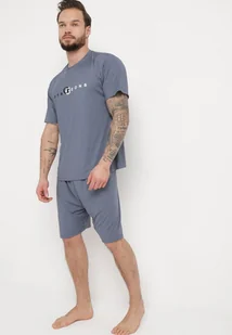 Ciemnoszara 2-Częściowa Piżama Koszulka z Nadrukiem i Szorty z Gumką w Pasie Allevia