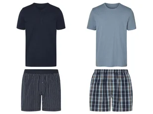 esmara Men Piżama męska z bawełny Opis produktu wspieramy zrównoważoną uprawę bawełny w Afryce przyjemny komfort noszenia dzięki czystej bawełnie granatowy/niebieski/w paski: koszulka z okrągłym dekoltem i listwą guzikową spodenki z wszytą gumką w pasie, rozporek z zapięciem na guzik i bocznymi kieszeniami niebieski/granatowy/szary: koszulka z okrągłym dekoltem spodenki z wygodną gumką w pasie, rozporek z zapięciem na guzik i bocznymi kieszeniami Cechy produktu table{width:100%;}td{padding-right: 30px; padding: 0.5rem; border-bottom: 0.0625rem solid #e3e4e5;} tr: nth-child(odd) {background-color: #F2F3F4;} Kolory: granatowy/niebieski; niebieski/granatowy/szary Wzór: