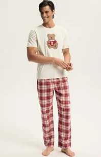 Esotiq bawełniana piżama męska Chrismis 44550-01X to propozycja, która łączy klasyczną wygodę z subtelnym, świątecznym charakterem. Miękka, naturalna bawełna otula skórę przyjemną lekkością, zapewniając komfort zarówno podczas wieczornego odpoczynku, jak i porannych chwil spokoju. Kraciasty dół w czerwieni i ecru wprowadza ponadczasowy, zimowy klimat, który kojarzy się z domowym ciepłem i chwilami relaksu. Górę zestawu zdobi haftowany miś w szaliku - delikatny, nienachalny akcent, który dodaje całości uroku, nie odbierając jej męskiego charakteru. Klasyczny T-shirt oraz spodnie w tradycyjną