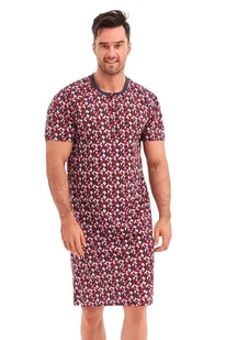 Męska bawełniana koszula nocna ma czerwony geometryczny wzór, idealnie nadaje się na prezent. Koszula nocna męska wykonana jest z wysokiej jakości 100% bawełny, dzięki czemu jest doskonale oddychająca i wygodna do spania. Posiada okrągły dekolt z trzema małymi guzikami. Po bokach krótkie rozcięcia. W opakowaniu znajduje się również bawełniany czepek do spania.