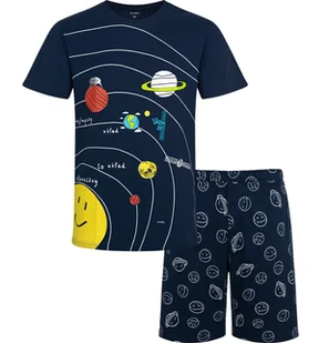 Męska piżama z krótkim rękawem, z motywem układu słonecznego, granatowa